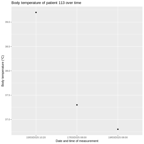 labs(title = "Body temperature of patient 113 over time",